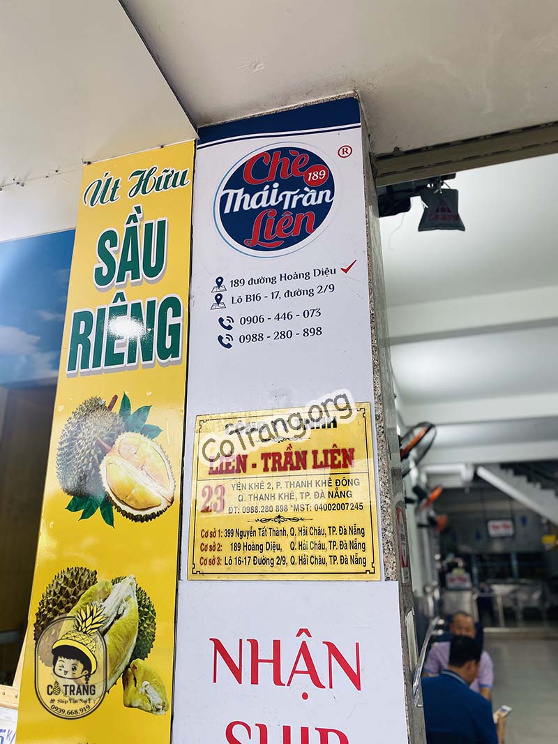 Số nhà 189 Hoàng Diệu, quận Hải Châu, Đà Nẵng là địa chỉ không thể bỏ lỡ cho những tín đồ mê chè. Chè Liên tại đây được biết đến với món Chè Thái Sầu Riêng siêu ngon, đặc trưng mà nhiều người yêu thích. Đến quán, bạn không chỉ được thưởng thức món chè hấp dẫn mà còn có cơ hội trải nghiệm không gian ấm cúng và thân thiện.
