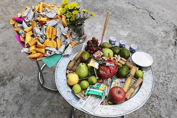 Ngoài ra, quần áo chúng sinh bằng giấy và tiền vàng là những lễ vật không thể thiếu trong mâm cúng. Khi sắp xếp, bạn hãy nhớ để bát lư nhang ở giữa và rải tiền vàng theo bốn hướng Đông, Tây, Nam, Bắc với mỗi hướng chừng 3-5-7 cây hương. Mâm cúng thường có gạo, muối, nước, rượu, trà cùng với hoa cúc nhỏ để tất cả được trang trọng hơn.