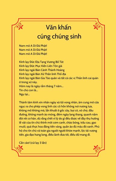 Ngoài ra, nếu có thể, hãy mời thầy cúng hoặc các sư thầy đến giúp, để buổi lễ diễn ra trang nghiêm và đầy đủ ý nghĩa. Cúng cô hồn là dịp để chúng ta bày tỏ lòng từ bi với những linh hồn lang thang, đồng thời cầu mong bình an cho gia đình.