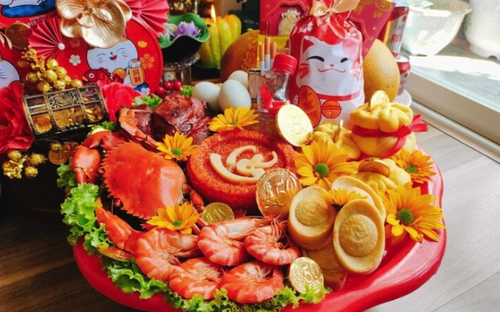 Khi bày mâm cúng Thần Tài, việc sắp xếp lễ vật sao cho ngăn nắp và sạch sẽ là điều rất quan trọng. Đầu tiên, bạn nên chuẩn bị bộ tam sên gồm 300g thịt heo (luộc hoặc quay), 3 quả trứng luộc và 3 con tôm hoặc cua luộc. Đây là những món không thể thiếu, thể hiện lòng thành kính và cầu mong may mắn.