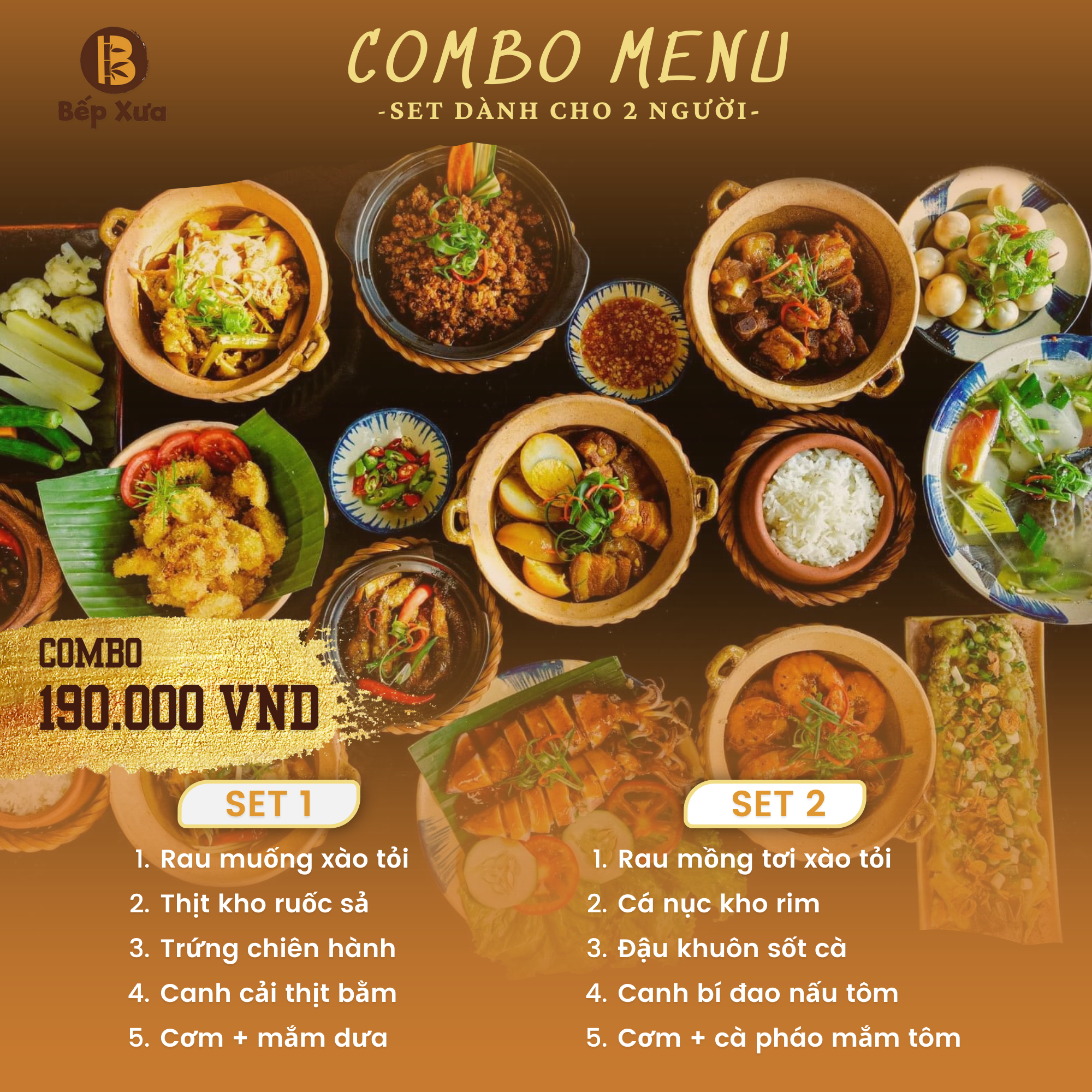 Thực đơn tại Bếp Xưa rất phong phú, từ cá kho tộ, canh chua đến thịt kho tàu, mỗi món đều mang hương vị gần gũi và chân chất. Không gian cổ điển và ấm áp của nhà hàng kết hợp với âm nhạc dân ca, nhạc cụ truyền thống tạo nên bầu không khí thân thuộc cho mỗi bữa ăn.