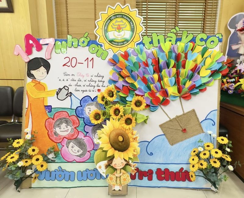Ngoài việc làm thiệp, các bạn cũng có thể trang trí lớp học bằng hoa tươi hay bóng bay để tạo không gian ấm cúng cho ngày 20/11. Sử dụng decal hoặc giấy màu để làm nổi bật không khí lễ hội. Hãy cùng nhau tạo nên một ngày đặc biệt để tri ân những người thầy, người cô đã dạy dỗ chúng ta!
