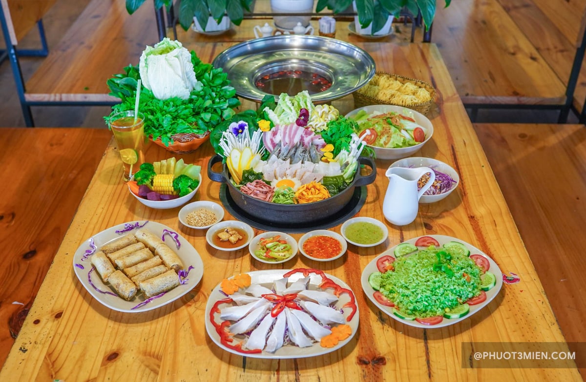 Đà Lạt còn nổi tiếng với nhiều quán buffet rau chất lượng, như Léguda, Lagim hay Green Bean. Mỗi quán đều mang đến thực đơn đa dạng với rau củ sạch từ các nhà vườn, cùng những nồi lẩu bổ dưỡng. Khi đến Đà Lạt, đừng bỏ lỡ cơ hội thưởng thức buffet rau với những hương vị bừng vạn này nhé!