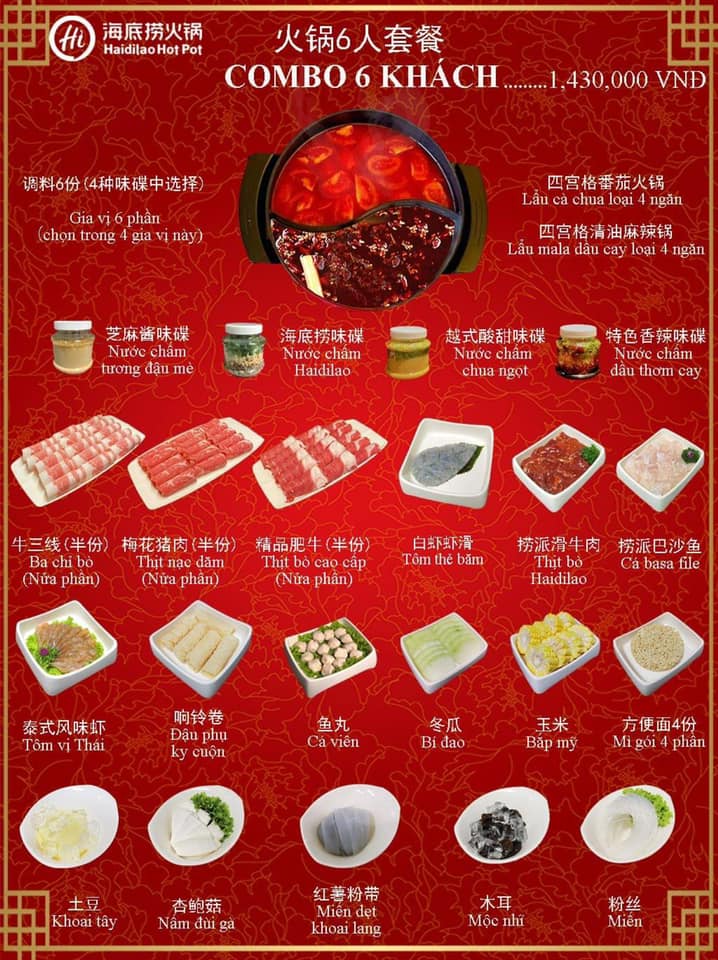 Haidilao Nguyễn Chí Thanh là một điểm đến lý tưởng cho những ai yêu thích ẩm thực lẩu. Với mức giá dao động từ 200.000 đến 500.000 VNĐ/người, bạn có thể thoải mái thưởng thức nhiều loại topping tươi ngon và các món nhúng hấp dẫn. Đặc biệt, nhà hàng còn có những combo tiết kiệm từ 594.000 đến 2.000.000 VNĐ cho nhóm đông, giúp mọi người dễ dàng chia sẻ món ăn với nhau.