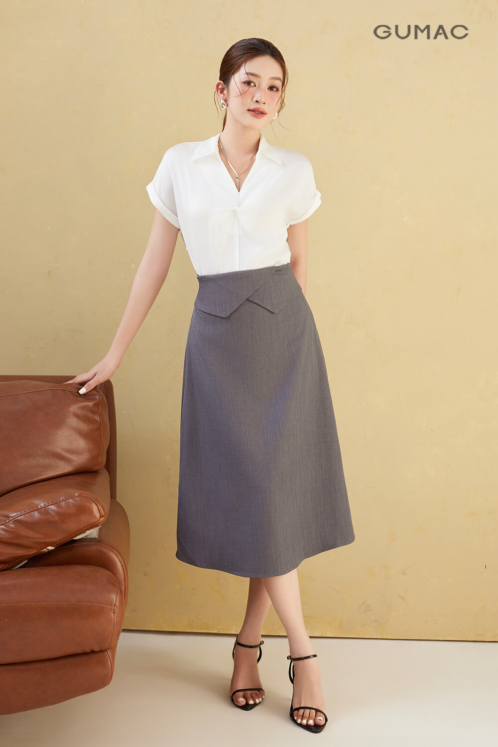 Khi nhắc đến phối đồ công sở, chân váy chữ A là một item không thể thiếu, giúp tôn lên dáng vẻ thanh lịch và chuyên nghiệp. Để set đồ hoàn hảo, bạn nên kết hợp chân váy màu trung tính như đen, xám hoặc xanh navy với những kiểu áo như sơ mi trắng cơ bản, áo blouse hay blazer. Các kiểu áo này không chỉ tạo sự chỉn chu mà còn mang lại sự thoải mái cho bạn trong suốt một ngày làm việc.
