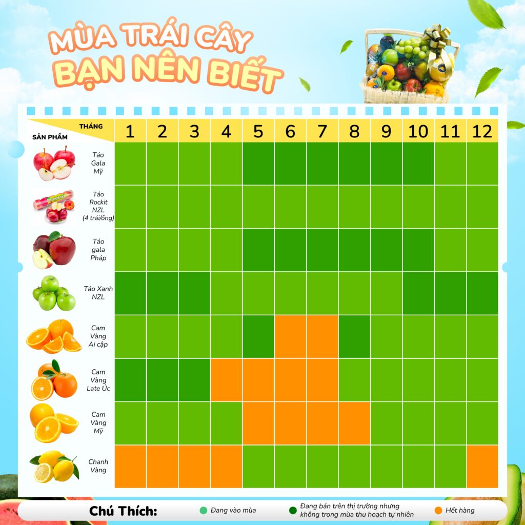 Đến tháng 2, trái cây tiếp tục đa dạng với những loại như mận, dưa hấu, và quýt, giúp bạn có thêm sự lựa chọn thú vị cho những bữa ăn hay bữa tiệc gia đình. Nếu bạn yêu thích vị ngọt mát của dừa hay mãng cầu, đừng quên thêm chúng vào danh sách mua sắm nhé!
