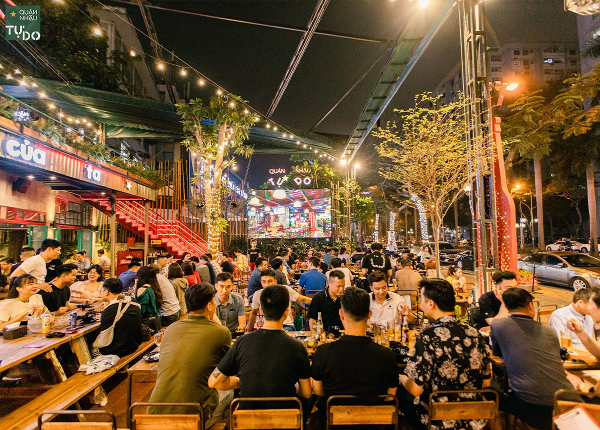Bên cạnh đó, quán Nhậu Tự Do nổi bật với diện tích lên tới 1000m², mang đến không gian sôi động và thoải mái cho những buổi tụ họp. Với sự đa dạng trong thực đơn, nơi đây chắc chắn sẽ làm hài lòng những ai yêu thích ẩm thực Việt Nam truyền thống.