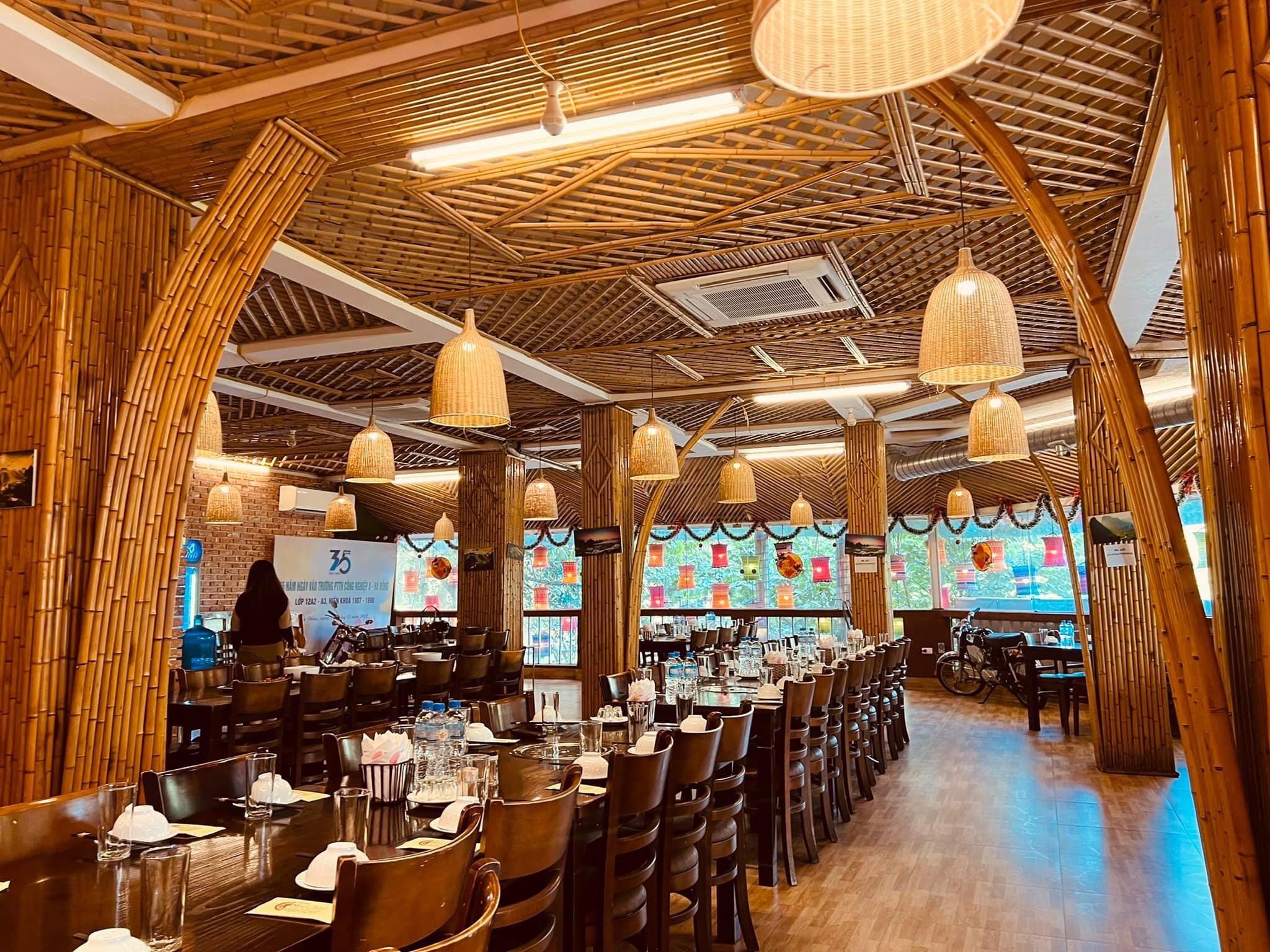Tại đây, thực đơn được xây dựng phong phú với nhiều món ăn ngon, nổi bật là những món đặc sản độc đáo mang đậm hương vị núi rừng. Giá cả hợp lý, chỉ từ 150.000 đến 250.000 VNĐ/người, giúp thực khách thoải mái lựa chọn mà không lo về chi phí.