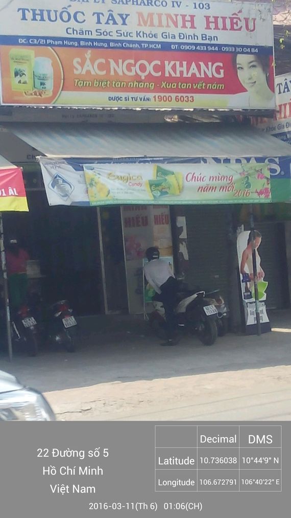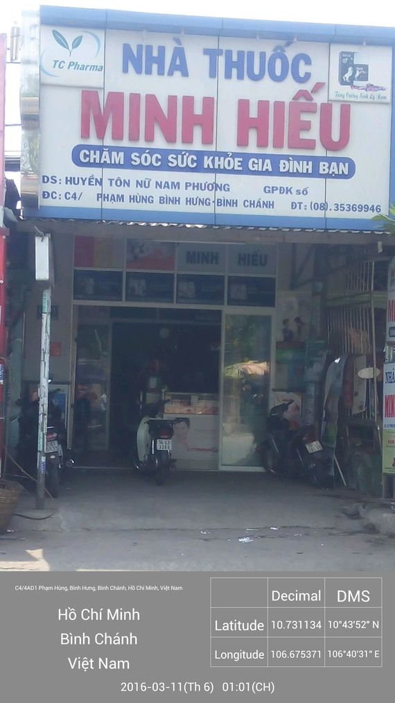 Nhà Thuốc Minh Hiếu 1 tọa lạc tại địa chỉ C3/21 Phạm Hùng, Xã Bình Hưng, Huyện Bình Chánh, TP. Hồ Chí Minh. Đây là một trong những nhà thuốc được nhiều người biết đến nhờ sự tận tâm và chuyên nghiệp trong việc phục vụ khách hàng. Chị Huỳnh Ngọc Phượng là chủ nhân của nhà thuốc, và luôn sẵn sàng tư vấn, hỗ trợ khách hàng trong việc chọn lựa thuốc một cách an toàn và hiệu quả.