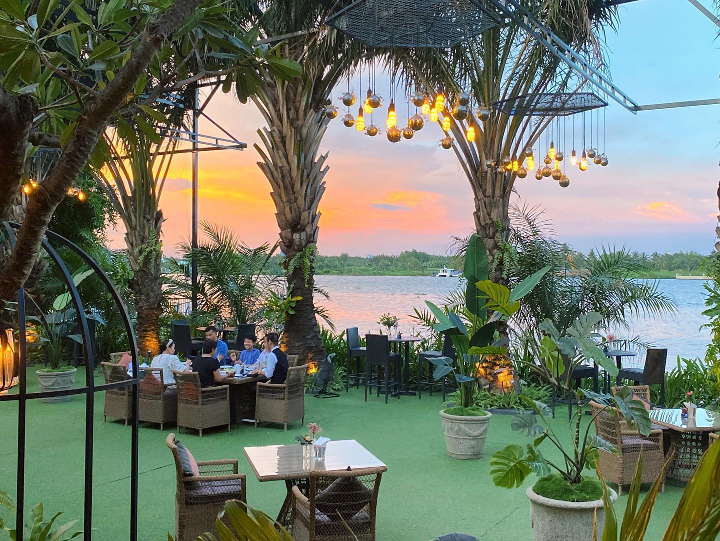 Không gian được thiết kế thân thiện, ấm cúng, rất phù hợp cho các buổi tụ họp gia đình hay bạn bè. Đặc biệt, vào lúc hoàng hôn, ánh đèn lung linh phản chiếu trên mặt nước khiến cho mọi khoảnh khắc trở nên tuyệt diệu hơn bao giờ hết. Quán còn có các gói dịch vụ cho sự kiện, giúp khách hàng dễ dàng tổ chức các buổi tiệc cưới hay sinh nhật.