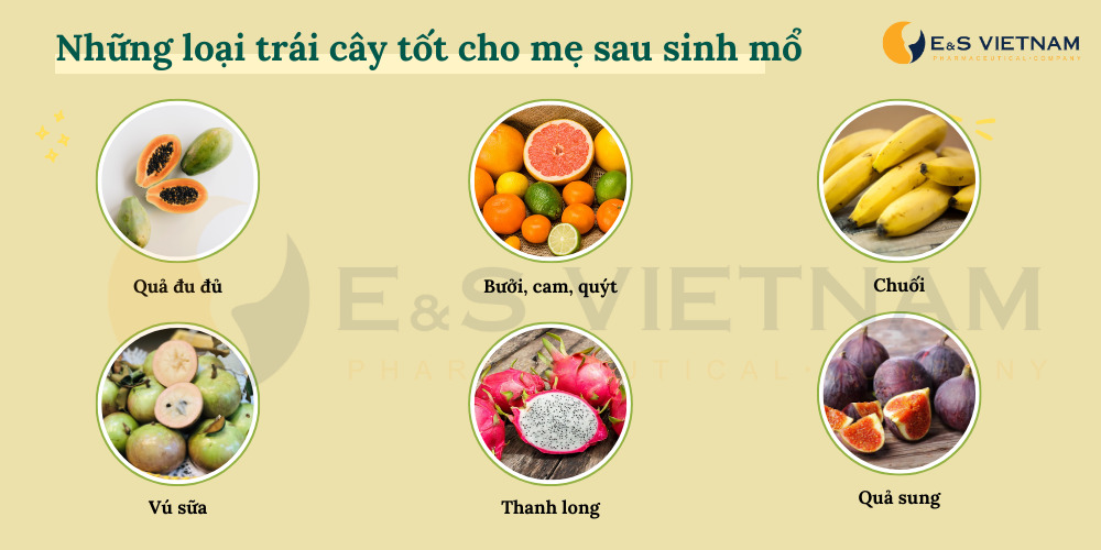 Sau khi sinh mổ, chế độ dinh dưỡng của mẹ rất quan trọng, đặc biệt là việc bổ sung trái cây. Trái cây không chỉ cung cấp vitamin mà còn giúp cải thiện sức đề kháng và tiêu hóa. Những loại trái cây tốt cho mẹ sau sinh mổ gồm cam, quýt, bưởi, chuối, đu đủ và thanh long. Các loại trái cây họ cam quýt rất giàu vitamin C, giúp tăng cường hệ miễn dịch và hỗ trợ phục hồi nhanh chóng.
