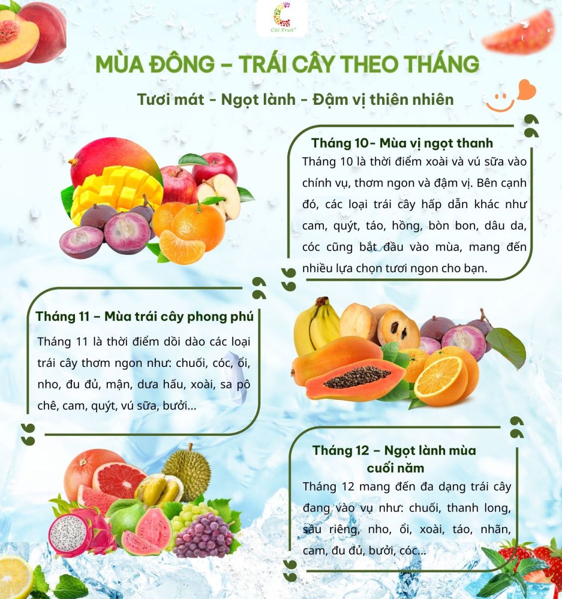Ổi cũng là một sự lựa chọn tuyệt vời với hương vị thơm ngon và nhiều vitamin. Bên cạnh đó, thanh long, với sắc màu bắt mắt và vị ngọt dịu, chắc chắn sẽ khiến bạn hài lòng. Các loại trái cây như nho, nhãn cũng đã vào mùa, mang đến cho bạn những trải nghiệm ngọt ngào.