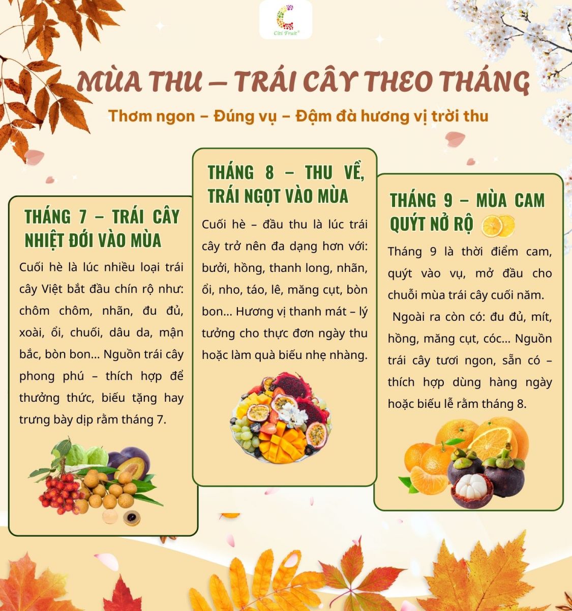 Không thể quên nhắc đến những món quà tuyệt vời khác như chuối, nho, và khế, vốn là sự lựa chọn quen thuộc trong mọi gia đình. Tháng 8 thực sự là thời điểm lý tưởng để bạn trải nghiệm sự phong phú của các loại trái cây, tạo nên những bữa tiệc ngọt ngào cho gia đình và bạn bè.