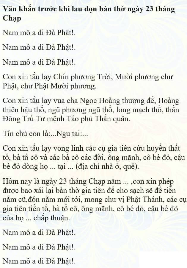 Cuối cùng, hãy nhớ thắp nhang và thành tâm khấn xin để bày tỏ lòng thành kính với Thần Tài và Ông Địa, cầu mong một năm mới tràn đầy tài lộc và bình an cho gia đình. Việc này không chỉ giúp dọn dẹp không gian thờ cúng, mà còn mang lại sự thanh tịnh và may mắn cho cuộc sống hàng ngày.