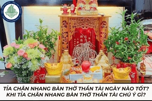 Tỉa chân nhang trên bàn thờ Thần Tài là một hoạt động quan trọng trong phong thủy, không chỉ giúp không gian thờ cúng luôn sạch sẽ mà còn hỗ trợ khai thông tài vận cho gia chủ. Theo truyền thống, những ngày 1, 15 hàng tháng, cùng các ngày Hoàng Đạo hay Đại An được xem là thời điểm lý tưởng để thực hiện việc này.