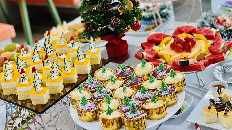 Sau khi đã thưởng thức những món mặn, bữa tiệc sẽ thêm phần ngọt ngào với những chiếc bánh cupcake nhỏ xinh, hay bánh bông lan cuộn phúc bồn tử tuyệt vời. Bánh tart trứng và bánh Religieuse cũng là những lựa chọn hoàn hảo để các bé thưởng thức.